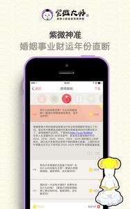 紫微大师星座算命是安卓平台上非常受欢迎的一款星座占卜软件,占卜大师坐镇,超高命中率,帮你精准预测运势。不管你是想测事业、学习、婚姻、健康,紫薇大师都可以满足你的需求。更有生辰八字、塔罗牌等实用预测工具,绝对是你预测运势必备的手机app。紫薇大师,让自己知己知彼,一切都掌握在自己手中。