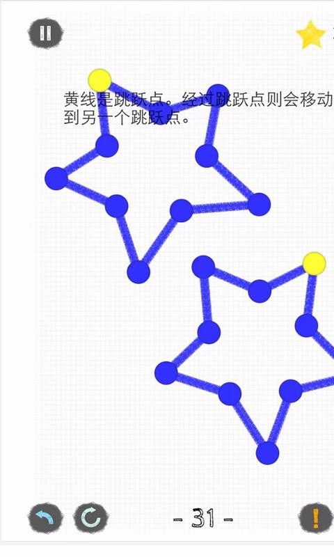 规则简单,要求玩家用一笔完成关卡中图形所有线条的绘制,注意不能重复绘制线条