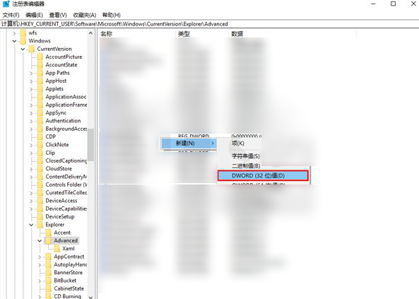 HKEY_CURRENT_USER\SOFTWARE\Microsoft\Windows\CurrentVersion\Explorer\Advanced