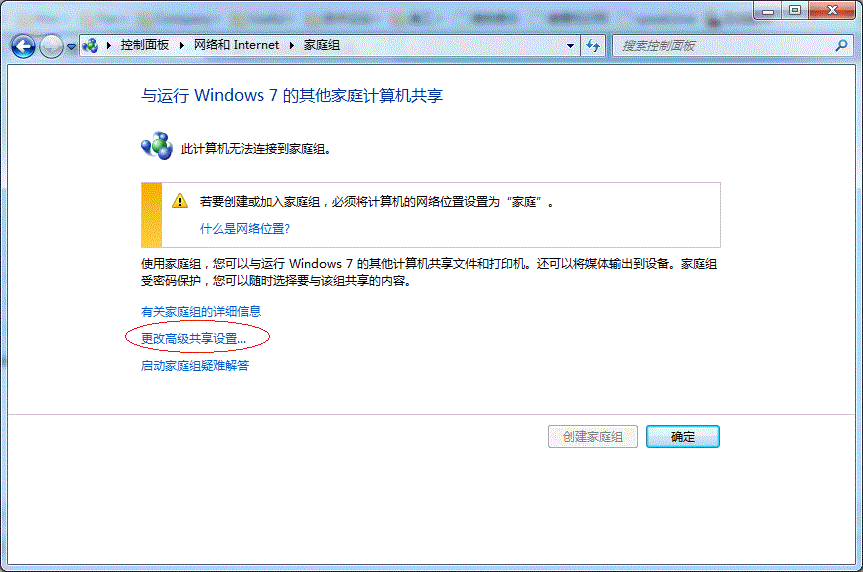 2. 璁颁綇鎵澶勭殑缃戠粶绫诲瀷(绗旇呯殑鏄伐浣滅綉缁)锛屾帴鐫鍦ㄥ脊鍑轰腑绐楀彛涓崟鍑汇愰夋嫨瀹跺涵缁勫拰鍏变韩閫夐」銆戯紝濡備笅鍥撅細