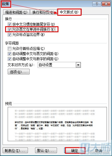 解决方法:选中所要设置的文字或者整行或者整个段落,右键单击会出现菜单项选择“段落”,在弹出的“段落”窗口中,单击“中文版式”标签,勾选“允许西文在单词中间转行”,后单击“确定”。如图:
