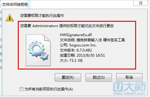 3.一般的软件默认安装在C:\Program Files目录下,打开该文件夹然后右键选择排序方式,选择按修改日期排序。这样你近安装的软件就会优先显示出来。找到隐藏的软件之后,删除它!假如显示无法删除,如图显示
