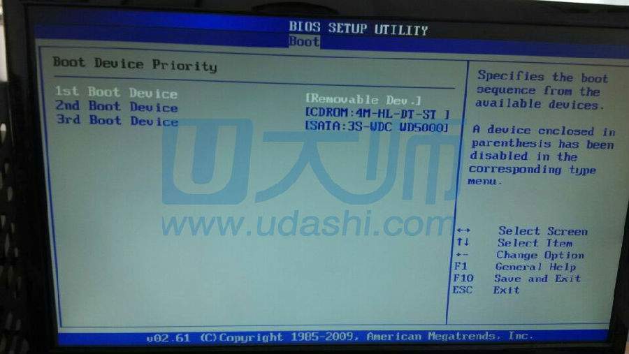 按了del后进入bios,U盘已经插上,却没有U盘的显示: