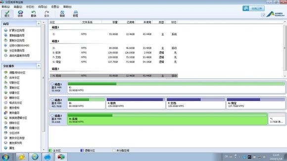 2.安装完成之后,我们打开软件,打开分区助手专业版软件如图: