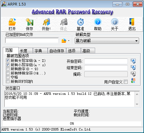 ARPR(RAR密码破解)是一款能够帮助用户破解RAR压缩文件密码的实用软件,支持破解多达一百二十八位的密码,同时还可以快速估算出破解密码需要的时间,密码破解过程中,用户可以随时中断或回复密码计算,方便实用。