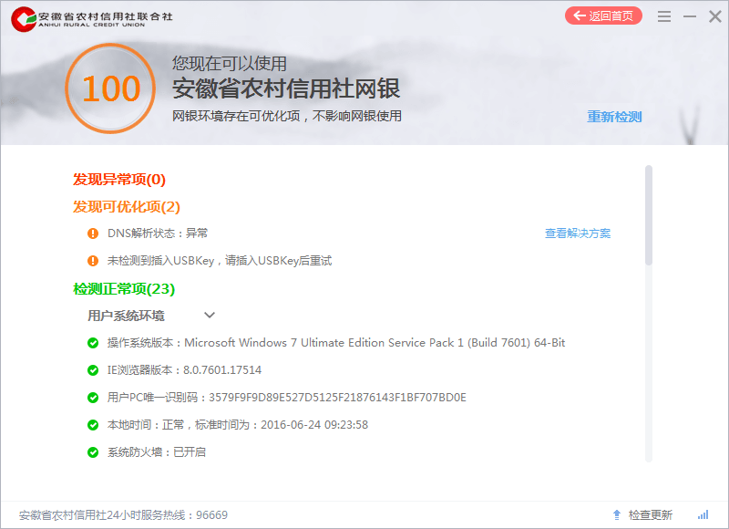 安徽省农村信用社网银助手是一款优秀的网银辅助工具,主要用于帮助安徽省农村信用社用户进行网上银行安全环境监测,可以一键修复。全面监测,一键修复,让上网环境更安全,网上交易更放心!