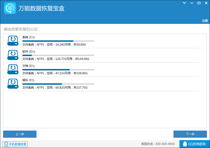 万能数据恢复宝盒是有驱动人生开发的一款支持U盘,SD卡,手机,内存卡,移动硬盘等设备的数据恢复软件,一键恢复数据,不仅操作简单,而且恢复成功率非常高。