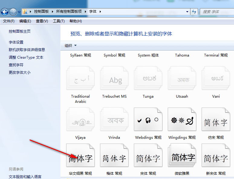 将控制面板中的字体选项打开,然后把下载好的字体复制粘贴进去
