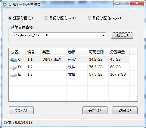 u深度一键还原精灵工具以其简单干净的界面,相信一定可以吸引着无数的使用者,在功能设定上也充分为用户着想,在操作上让用户们真正感受到了“一键”操作的魅力。