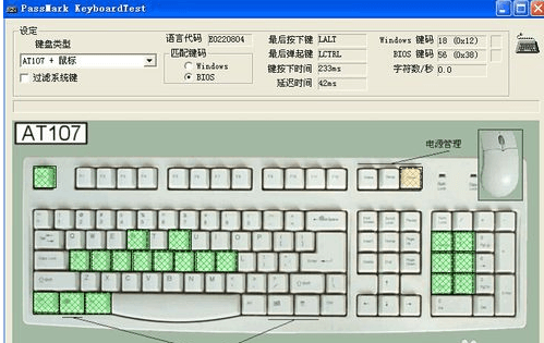 4、逐个测试键盘上的键位,出现绿色网格的键位正常,没有出现的则有问题;