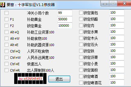 要塞十字军东征修改器是一款专为游戏要塞十字军东征打造的游戏辅助工具,你也可以称它为游戏作弊器。软件体积小巧,下载方便,能够帮你轻松的对游戏参数进行修改,比如冲关小鸡的个数,锁定面包的个数,锁定黄金数量等。