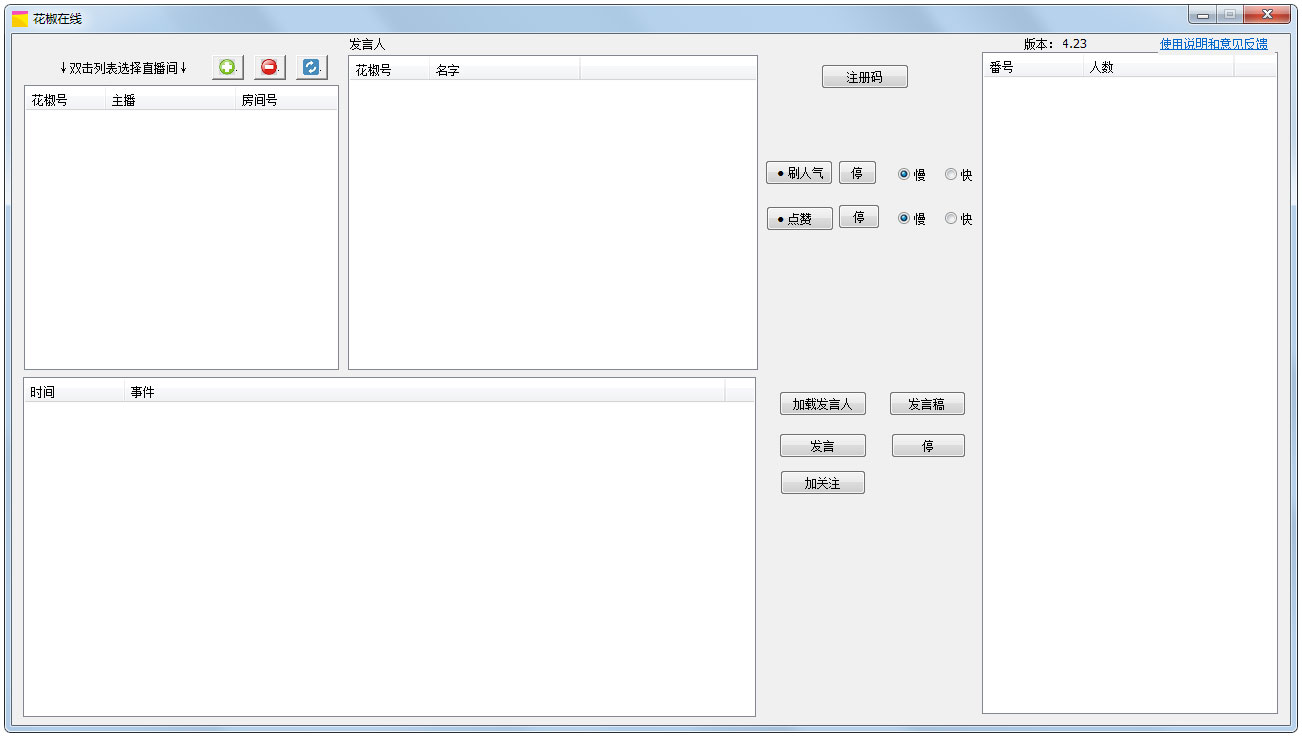 花椒直播在线利器是针对花椒直播制作的一款直播辅助软件,花椒直播在线利器集自动点赞、自动发言、增加人气、刷人气、刷粉丝关注、刷赞、刷礼物等功能,分分钟助花椒的主播们上热门,帮助主播更加轻松的进行直播。