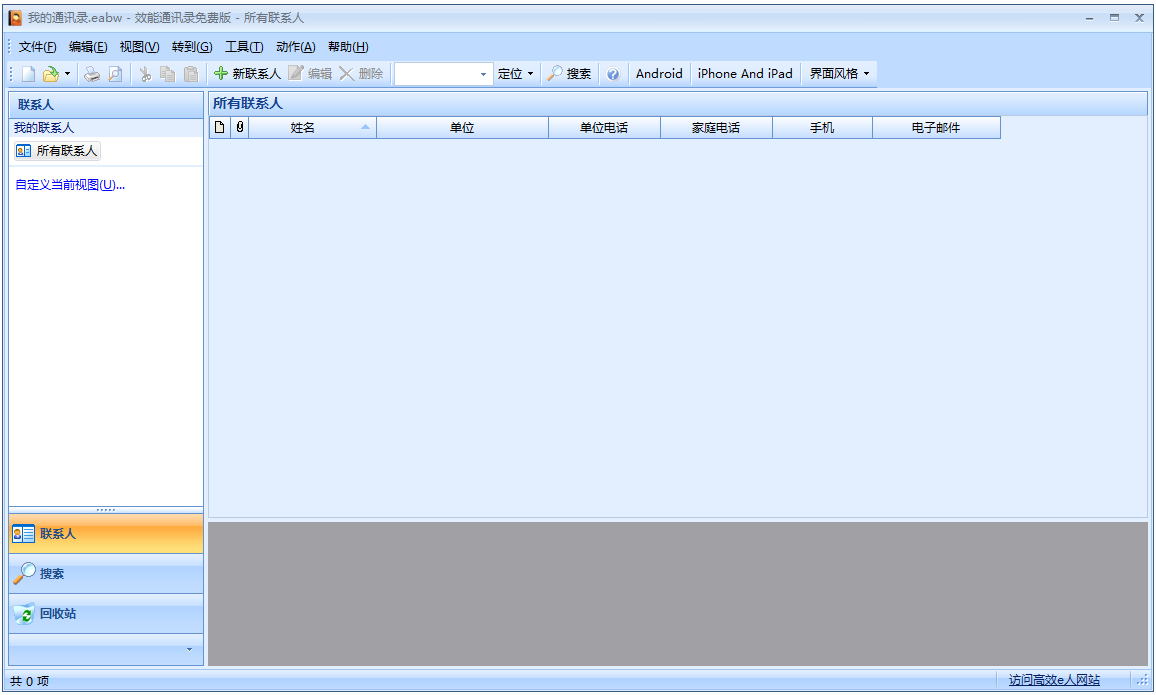 效能通讯录是一款专业、美观、易用的联系人及客户信息管理软件。软件支持无限级别的联系人分组,帮助您快速管理成千上万的联系人信息;特有拼音首字母自动识别功能,帮助您快地查找到相关信息。