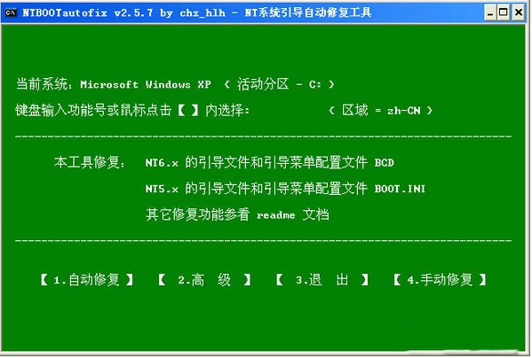 2、NTBOOTautofix(双系统引导修复工具)程序根据当前系统non-Unicode设置自动显示中/英界面;