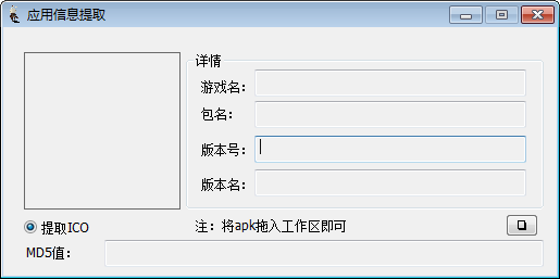 apk图标提取工具是一款界面简洁、操作简单的图标提取工具,能够帮助用户快速提取apk文件中的图标,并且还会显示apk文件的详情信息,包括游戏名、版本号、包名、版本名以及MD5值等信息。