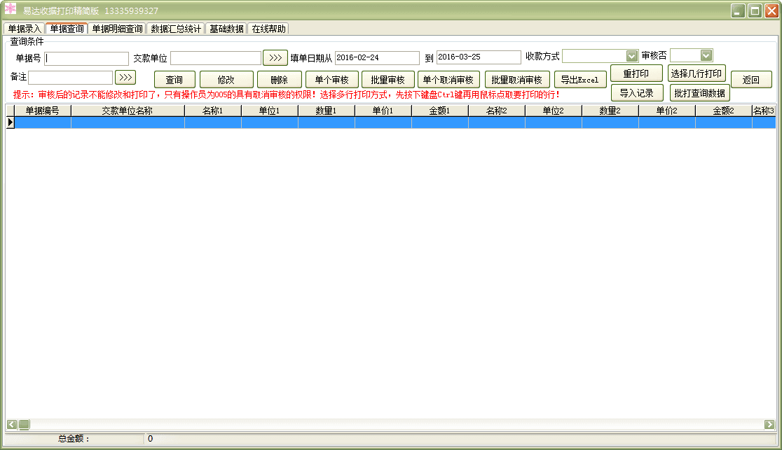 3、可对收据进行保存、修改、删除、查询等管理操作。