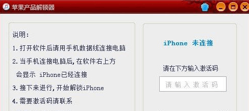 苹果产品解锁器是一款非常实用的工具,专门为苹果手机用户设计,可以帮助用户轻松解锁苹果产品。软件界面简洁直观,操作十分方便,首先将手机连接到电脑,然后联系客服获取激活码,输入激活码即可解锁。