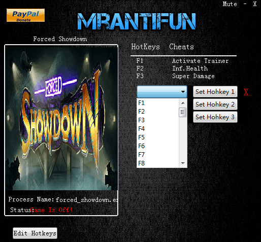 强制对决两项修改器是一款根据同名游戏制作的辅助工具,软件界面简洁直观,使用非常方便,先启动游戏后打开修改器,然后使用快捷键即可。软件功能强大,可以让玩家轻松获得无限生命、超级伤害等能力,方便实用。