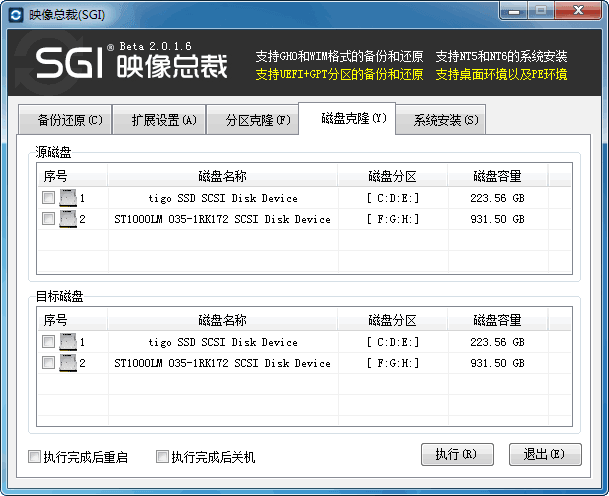 2、SGI支持UEFI+GPT分区的备份和还原。