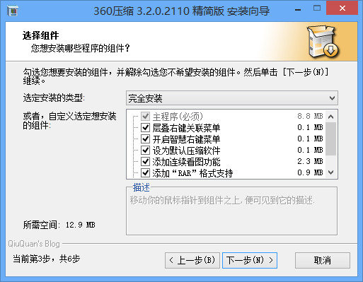 精简版是一款压缩软件,软件更改自知名的压缩软件360压缩,精简了无用的组件,和开启安装组件选择,用户能够自由的选择需要安装的组件。360压缩支持多种压缩格式,适合常驻电脑。