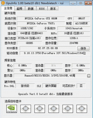 显卡检测工具可以显示硬件信息 BIOS版本 驱动信息 显存类型 频率信息