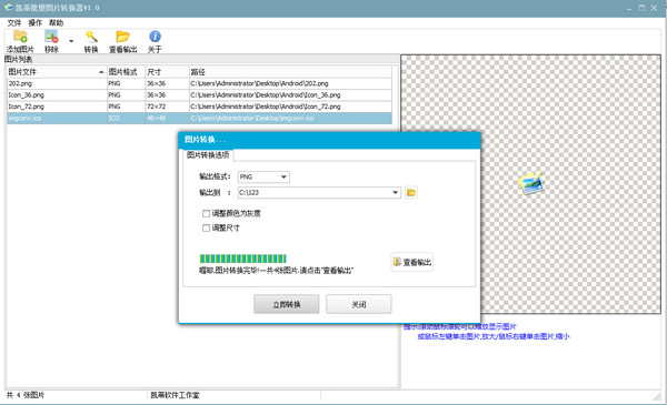 支持png/jpg/gif/ico/bmp等几种常用的图片格式之间进行转换;