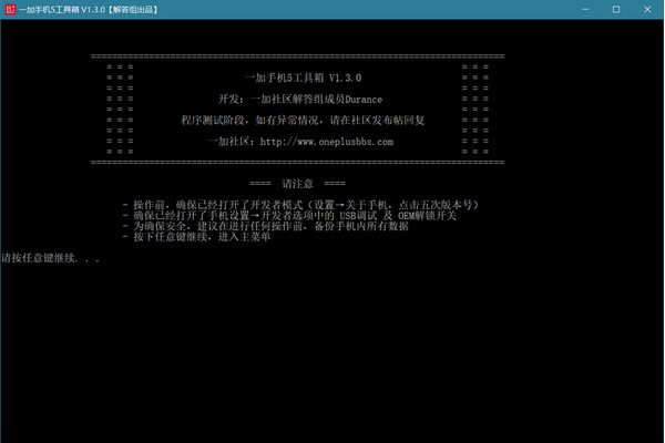 本工具仅适用于一加手机5,其他机型切勿尝试。