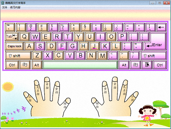 嘉嘉英文打字高手能够帮助用户快速掌握指法和规范指法,寓教于乐的教学方法,激发用户的学习兴趣,为用户打造一个轻松舒适的学习环境,包括手指分工练习、综合练习、点手指练习等多种练习模式,软件界面简洁美观,无需安装,下载即用,是英文初学者练习打字的必备神器。