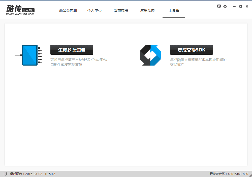 酷传是一个极速、智能的app发布平台,致力于为广大开发者提供一站式应用发布与监控服务。支持app发布自动打包,一键上传app到多家应用商店,app上传极速审核,随时查看审核进度,打造专业的app开发者平台和开发者中心,酷传,让上传更简单。